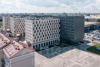 Проект общественно-делового комплекса разработан одной из известнейших архитектурных студий Санкт-Петербурга - компанией "INTERCOLUMNIUM". Концепция проекта заключается в создании яркого, запоминающегося образа современного комфортного здания, отвечающего самым высоким стандартам жизни.