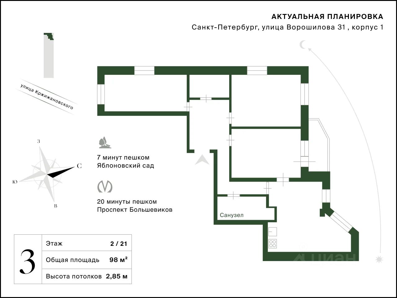Арт. 134470360 Трёхкомнатная квартира с продуманной планировкой и качественным ремонтом у парка.