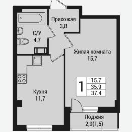 Продаётся 1-комнатная квартира в сданном доме (Крымская, 1 (Дом 1к1)), срок сдачи: II-кв. 2024, общей площадью 38.9 кв.м., на 2 этаже. Новый жилой комплекс "Южная Заря" от застройщика "Гарантъ" расположен по адресу: Россия, Ленинградская область, Всеволожск, микрорайон Южный, Крымская улица, 1к1