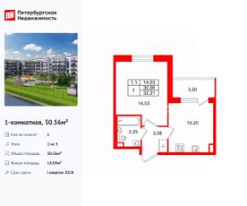 Удобная, классическая планировка, кухня 10.2 м², вместительная прихожая 3.08 м². Общая площадь квартиры - 30.56 м², жилая 14.03 м², высота потолка 2.77 м.
