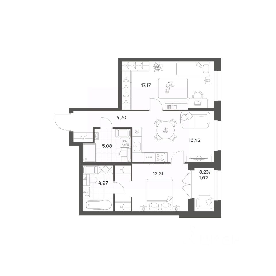 в Речной квартал от компании ГК "ТРЕСТ". Площадь кухни 16.42 м². Семейный жилой комплекс комфорт-класса "Речной квартал" от Группы компаний "ТРЕСТ" расположен в Невском районе Петербурга на пересечении Октябрьской набережной и Русановской улицы.