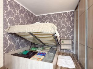 3. В квартире выполнено грамотное зонирование: кухонная зона, зона гостиной (отдыха) и зона сна. Разделение пространств за счёт шкафа с одной стороны и рабочего стола с другой. В кроватке доп. Место для хранения.