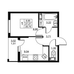Продаётся 1-комнатная квартира в строящемся доме (Дом 1), срок сдачи: IV-кв. 2028, общей площадью 28.78 кв.м., на 12 этаже. Жилой комплекс "Высота" расположен в пос. Бугры рядом со станцией метро Девяткино. Проект представляет собой пространство, рядом с которым есть все самое необходимое для комфортной жизни.