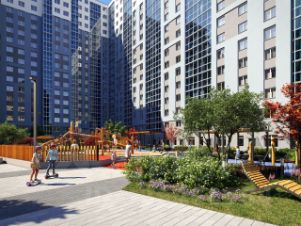 На территории комплекса будет выполнено благоустройство, размещены детские и спортивные площадки, а также зоны отдыха для жителей дома. Доступ в жилую часть разработан с учетом потребностей маломобильных групп населения.
