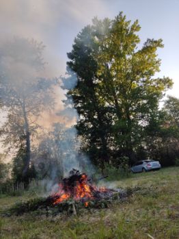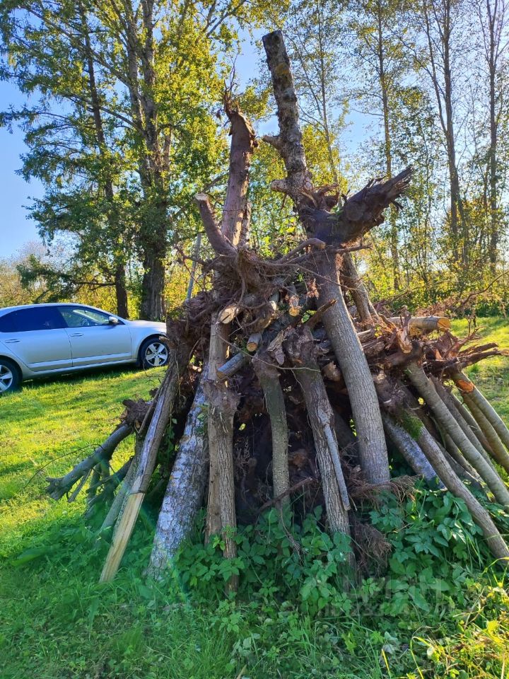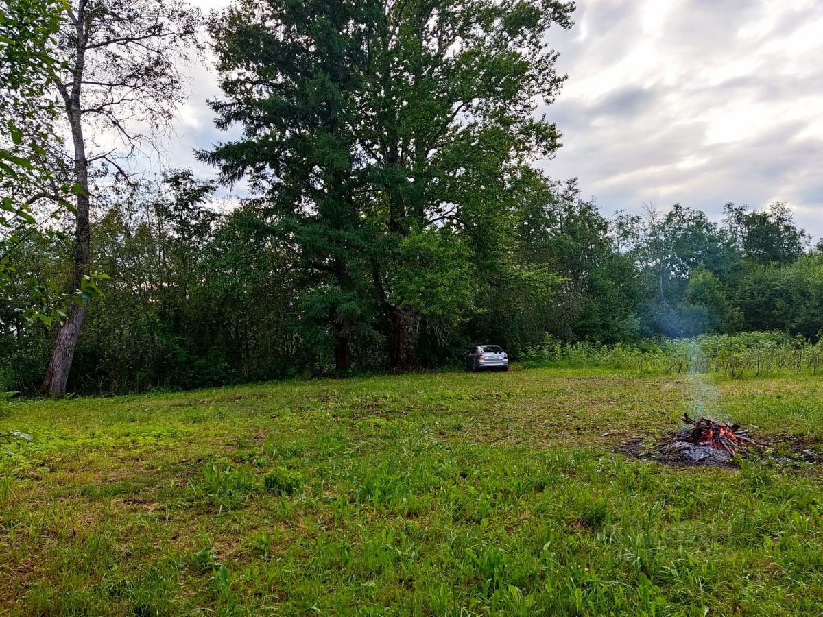 Высокий, раскорчеван, выровнен, ухожен, сделан въезд, установлен столб для организации узла учета электроэнергии, документы на 15 кВт получены, рядом лес, через дорогу (50 метров) речка Сясь.
