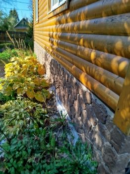Фундамент дома свайный, обшит цокольным сайдингом, крыша металлочерепица, утеплена.