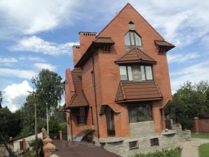 Коттедж в пос. Парголово, СПб, прописка городская Участок 16 соток. , ИЖС, имеет гористый ландшафт оформлен двумя дворами, на горе сделаны плоские каскады.На верхнем дворе коттедж 328,3 кв.м и газоны. Архитектурное решение: до второго этажа одно здание, со 2го этажа две башни соединенные мостиком в зоне холла.Стены - кирпич (фирмы Кнауфф), крыша- натуральная черепица (фирмы Брас).Цокольный этаж- гараж для 2х машины, мастерская, котельная, прачечная, тренажерный зал, сауна, душевая на 2 точки и санузел. 1-эт. Гостиная 33 кв. м.Каминная стена отделана натуральным камнем. Два балкона с видом на сад.