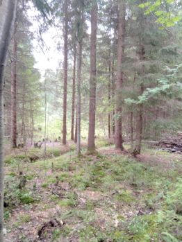 На участке сохранен естественный ландшафт( растут молодые ели, березки ).