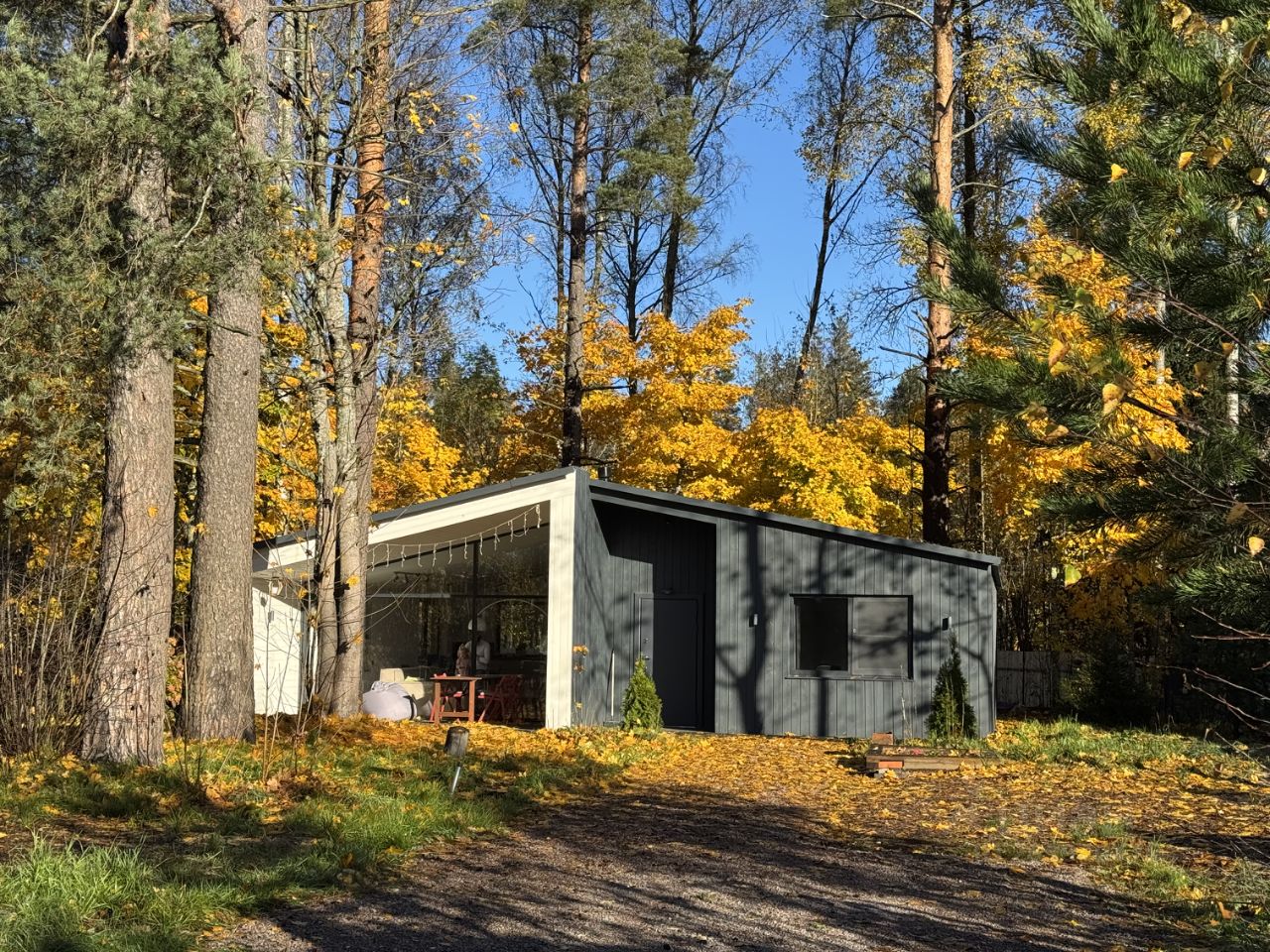 Современный одноэтажный коттедж построен по финской каркасной технологии. Фундамент утеплённая ж/б лента.