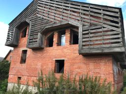 О ДОМЕ: Дом разноуровневый из красного кирпича (толщина стен 2 кирпича) стоит на ленточном бетонном фундаменте при толщине стен 50 см. Крыша алюминиевая. На втором этаже есть балкон. Также сделан подвал 47кв.м. Обустроены черновые полы. Оставшиеся строительные материалы в подарок новому хозяину.