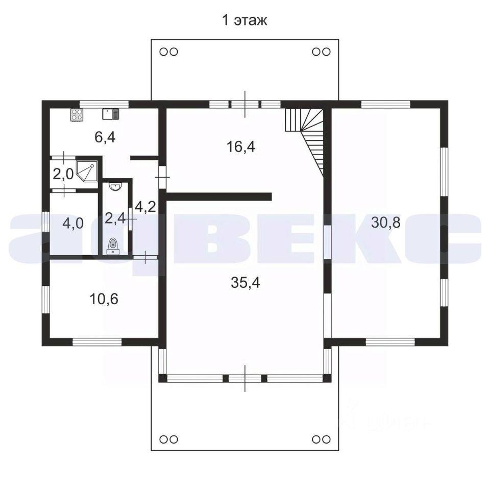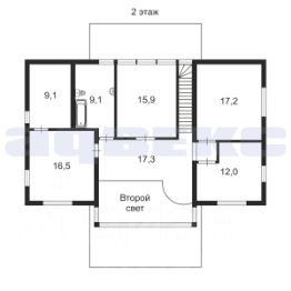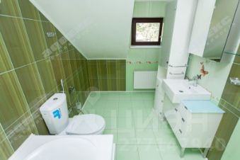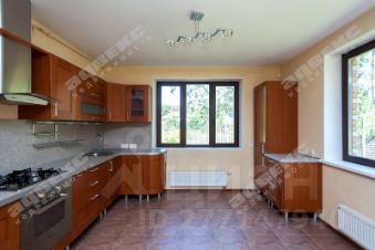 Площадь коттеджа составляет 213.6 кв.м. Участок - 1429 кв.м. Также в собственности подъездная дорога (два участка по 1/9). Дом построен в 2005 году.