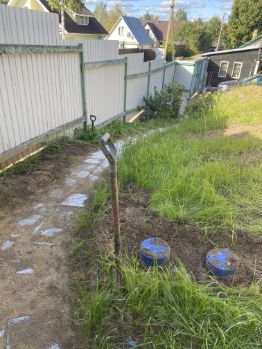 Участок огорожен забором из профлиста, есть плодовые деревья , кусты, ягоды.