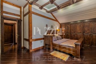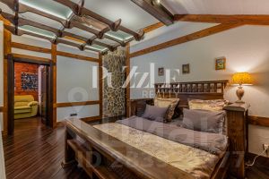 Дом построен и отделан с использованием только натуральных материалов. Деревянная мебель и элементы подчеркивают атмосферу тепла гармонии. Столы и стулья, кровати и шкафы результат мастерски выполненной ручной работы! Так на второй этаж ведет лестница, выполненная из массива. Как легко подниматься по этим широким ступеням! Наверху расположено целых пять спальных комнат! Мастер-зона (34 м2) хозяев дома оборудована небольшим кабинетом и собственным санузлом. За другой дверью нас встречает светлое пространство детской комнаты (24 м2), которое ждет своего нового маленького хозяина. Из окон каждой комнаты открывается великолепный вид на окружающий лес, сосны и линию горизонта!