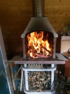 Фундамент блоки.Окна деревянные, установлена печь-камин.