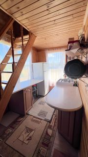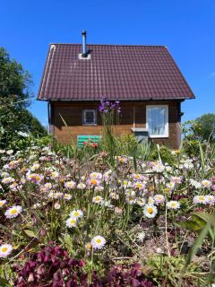 сейчас на участке расположен дом-баня, который собственники строили для себя. Первый этаж дома теплый, можно проживать и в зимнее время. Второй этаж летний с высокими потолками, светлый и просторный;