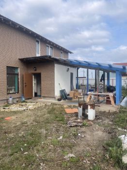 Залит фундамент и стоит летняя кухня-беседка 6.5 *4.5м, толщина плиты 30-40см
