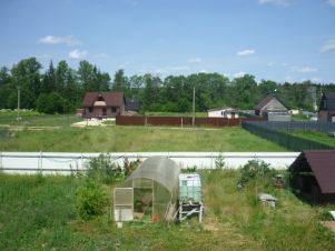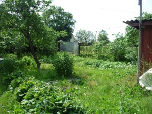 Участок разработан, плодовые деревья яблони, слива, кусты смородины. Большая часть участка огорожена забором.