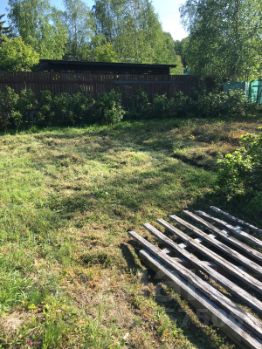 Продается земельный участок ровной прямоугольной формы. Участок граничит с лесом. Есть возможность выйти через вторую калитку в лес на прогулку или по грибы и ягоды. Участок огорожен сеткой рабицей. Есть ворота для парковки автомобиля. Парковка на 1 автомобиль отсыпана щебенкой. На участке растут слива, крыжовник, смородина, клубника. Два цветника и две туи. Электричество 10 киловатт. Участок продается как условно свободный без построек. Кадастровый номер 47:01:1123001:235. Водопровода и канализации на участке нету. На соседней улице есть скважина с круглогодичной родниковой водой. Озеро в 10 минутах ходьбы. На территории садоводства есть детская площадка, организованная мусорная площадка. Въезд на территорию садоводства осуществляется через автоматический шлагбаум. На территории садоводства в летний период работает магазин.