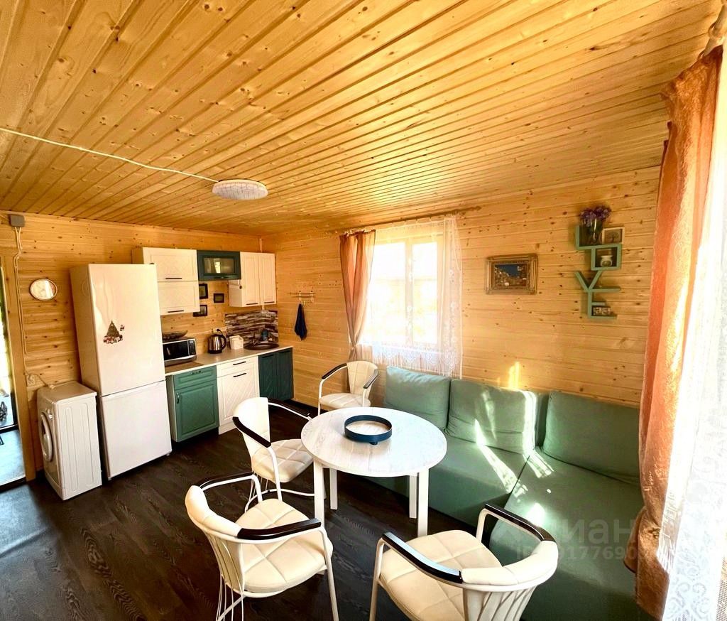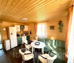 В доме кухня-гостиная со всей необходимой мебелью и бытовой техникой (плита, мультиварка, холодильник, чайник, микроволновая печь, стиральная машина, телевизор, посуда и столовые приборы), 2 изолированных спальни, прихожая, санузел (ванна, раковина, унитаз) и большая веранда с местом для посиделок и качелями.