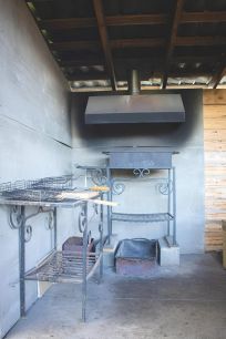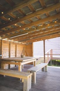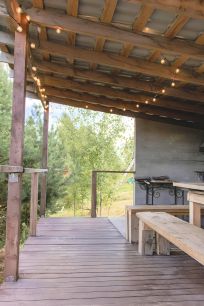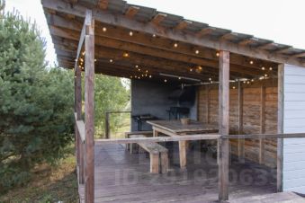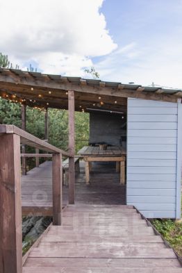 просторная беседка 6х4 с мангальной зоной. Объединена с домом единой террасой.