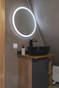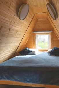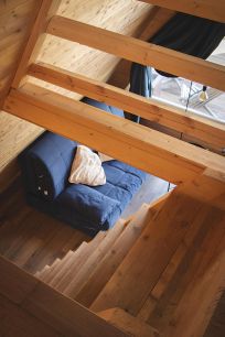 На первом этаже расположена кухня гостиная с панорамными окнами, санузел и сауна. К дому примыкает терраса 36 м2.