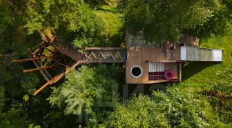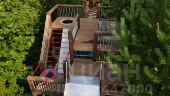 - На участке сделан детский городок: горка, тренажеры, дом на дереве, спорт- площадка!