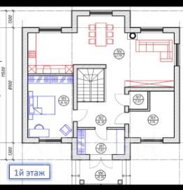 1 этаж (100 кв.м) - просторная столовая-гостиная с камином, кухня, спальня