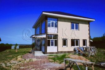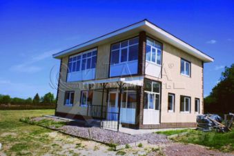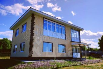 Дом площадью 220 кв.м на участке ИЖС фактической площадью 23 сотки из газобетона на фундаменте из монолитной бетонной плиты с четырехскатной кровлей из металлочерепицы.