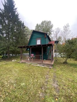 Характеристики дома: общая пл. дома 61 кв м (вместе с мансардой), 2х эт, бревенчатый, обшит вагонкой, туалет на улице.