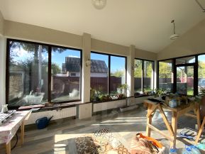 - на 1 эт. закрытая утепленная веранда с теплыми полами площадью 46 м кв., санузел раздельный с сауной и отдельно душевая комната.