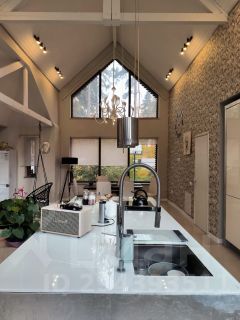 Кухня : Kuppersbuch, фабрика "Орандж кухни" (Австрия), смеситель раковина на кухне "Blanco". столешница закалённое стекло (Италия).