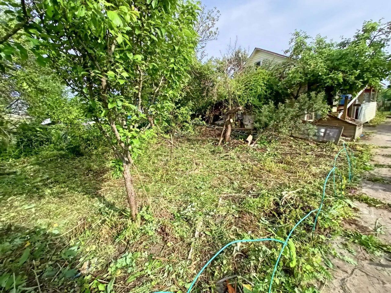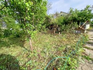 Из деревьев есть 6 яблонь, 2 сливы, кусты смородины, крыжовника и вишни.