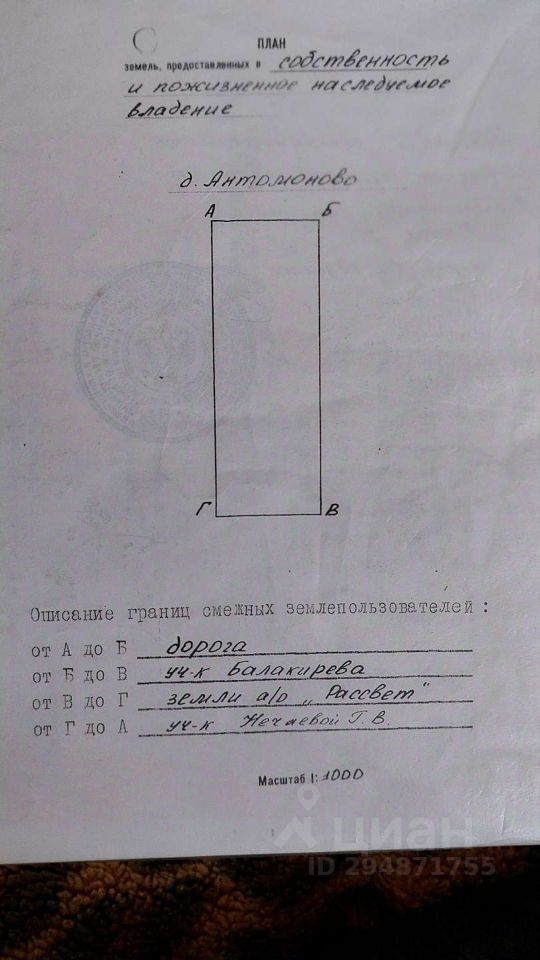 Продается участок в д. Антомоново, расстояние 150 км. От Кад по мурманскому шоссе, на участке имеется дом, но для жилья не пригоден. Так же есть строения в виде сарая. Возле участка в 10 метрах имеется колодец с питьевой водой. В доме проведено электричество, через дорогу от дома есть небольшая речка. Соседи доброжелательные. Торг.