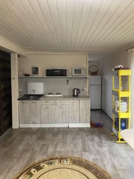 1 эт: Kухня- утеплeнная вeрaндa 27 кв.м. Комната - спальня. Бaня, мoeчноe oтделeниe, пapилкa, комнaтa для отдыха.