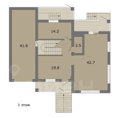 На 1 этаже сделана чистовая отделка (за исключением полов): залиты ровные полы (можно уже класть паркет или плитку), поклеены обои, установлены радиаторы, в санузле выложена плитка и установлена сантехника, сделан теплый пол. Монолитная лестница с деревянными ступенями. Есть дымоход для камина.