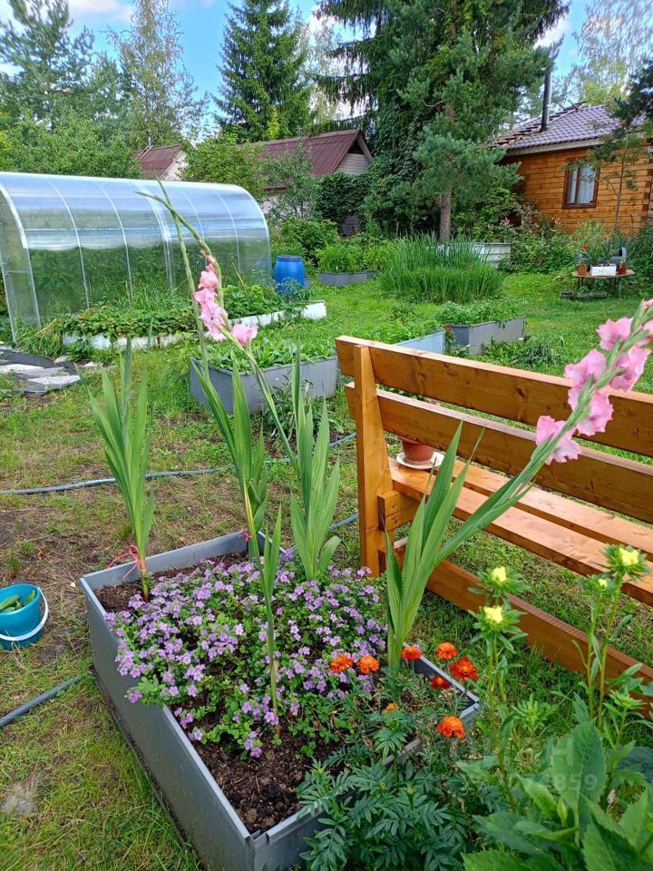 На участке расположена теплица, высокие грядки, высажены плодовые кустарники, туя, гортензии, розы, лилии.