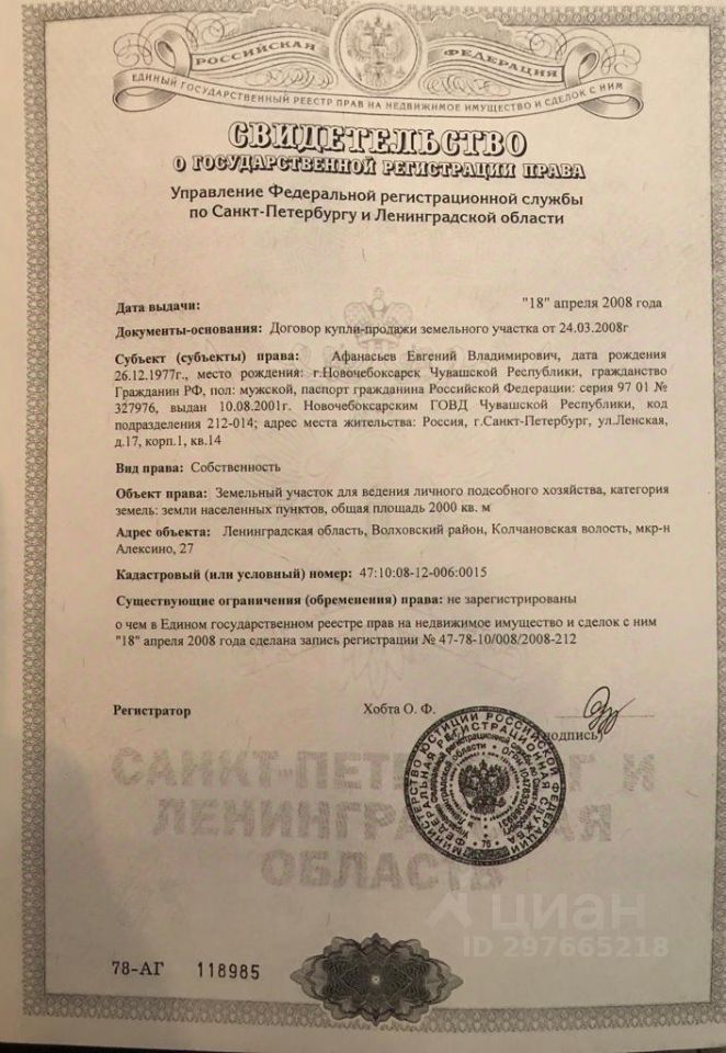 Кадастровый номер участка 47:10:0812006:*** указал продавец