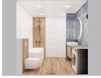отделка санузел- керамогранит, декоративная штукатурка, теплые полы. , натяжной потолок, вся сантехника.