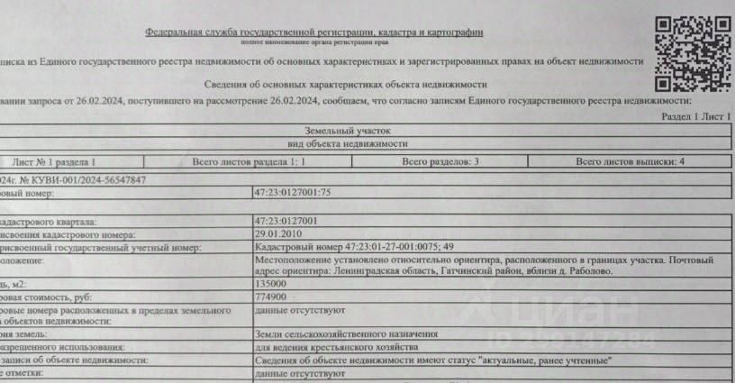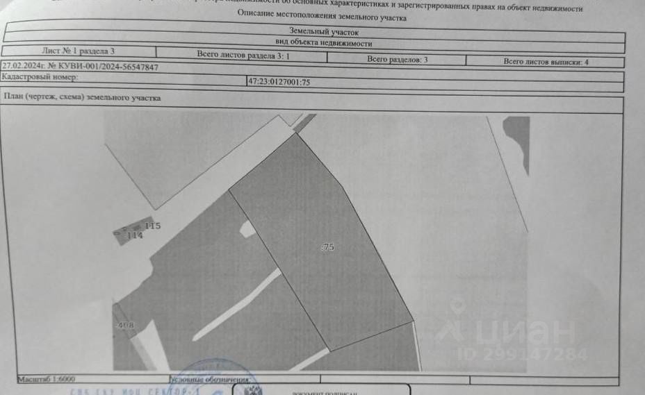Кадастровый номер участка 47:23:0127001:*** указал продавец