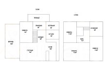 1 этаж - кухня-гостиная с выходом на веранду, котельная, с/у + душ, комната, прихожая, коридор