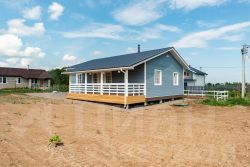 Дом построен из сухой строганной калиброванной доски камерной технической сушки, экспортного качества, а стропильная система представляет собой изготовленные на производстве стропильные фермы на металлозубчатых платинах. Весь каркас собран пневмоинструментом на ершеные гальванизированные гвозди.