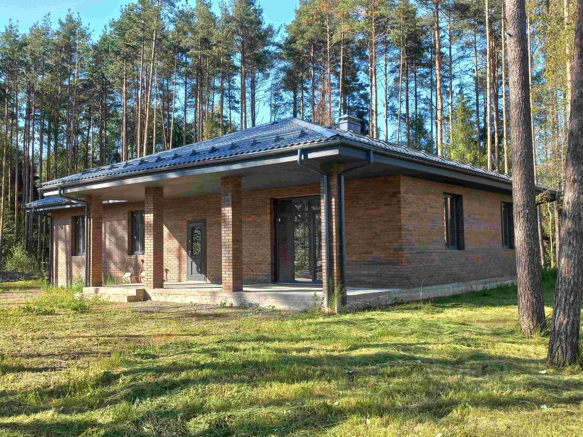 Первый этаж: три спальни (16,19 и 22кв.м), гостиная-кухня 51 кв.м, два санузла (1,6 и 9,5кв.м), гардеробная, прихожая, коридор, котельная и крытая терраса 29кв.м. Высота потолков 3,2м. Отопление теплые полы (от электрического котла, который при подключении газа может стать дублирующим газовому котлу).