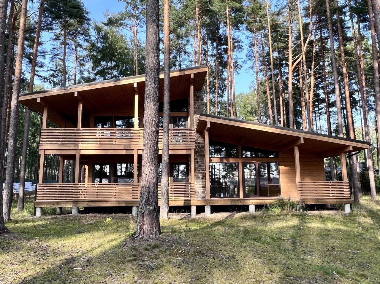 Из окон открываются великолепные виды на озеро и сосновый лес.
