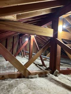 Цокольный этаж (потолок 2,3М) полностью монолитный на монолитной плите, толщина стен 30СМ, утеплён по всей высоте. Первый и второй этажи (потолки 3М и 2,5М) каркасные. Весь каркас из доски 200*50мм (включая перегородки), утепление минватой Rockwool. Изначально предусматривался второй свет, можно вернуть. Полноценный большой холодный чердак. Обшивка дома имитация бруса, кровля металлочерепица.