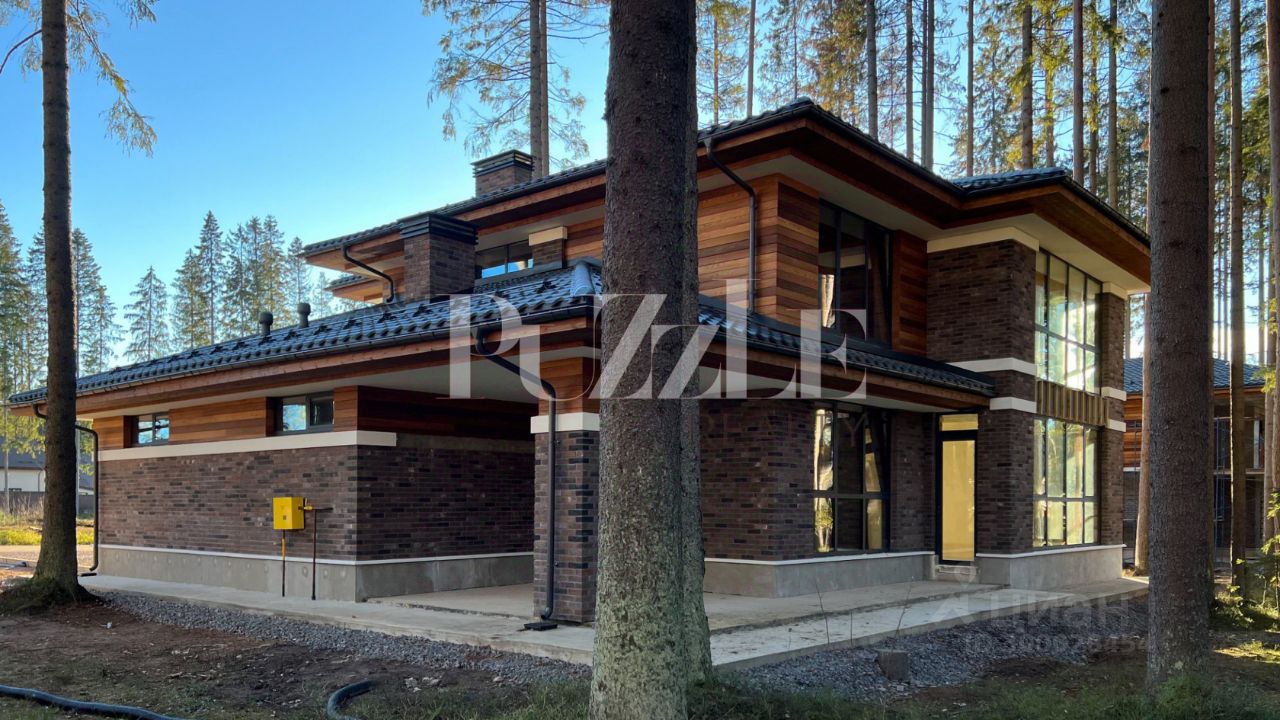 - современный дом в стиле Райта с высокими потолками и окнами в пол;