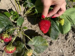 На участке растет много деревьев и ягод: яблони, сливы, вишня, голубика, крыжовник, смородина, малина , клубника .