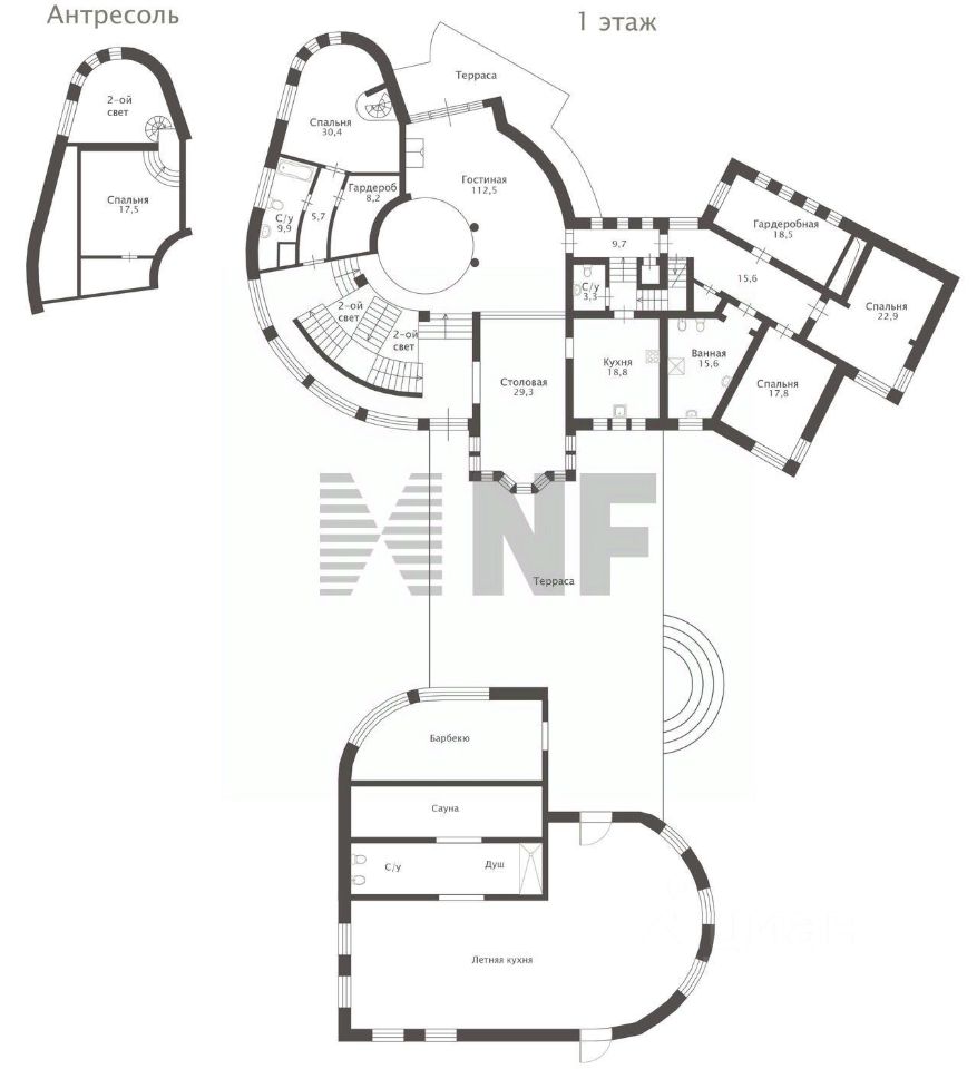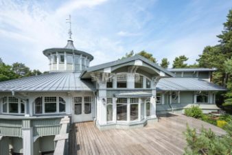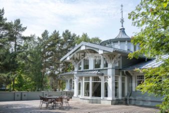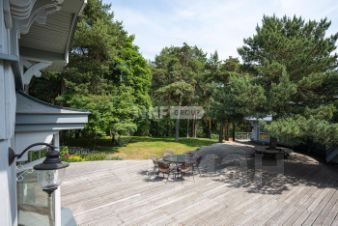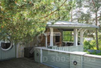 Лот: 9917187. Предлагается к продаже кирпичный особняк с благородным деревянным сайдингом с резными элементами в стилистике "Сестрорецких дач". Дом оснащен современными технологиями, кровля выполнена из высококачественного цинк-титана от немецкого производителя Rheinzink. Интерьеры выполнены по индивидуальному дизайн-проекту с использованием натуральных материалов, дом полностью оснащен всем необходимым, меблирован. Кухня оснащена печью Aga для варки и тушения на медленном огне и встроенной мебелью немецкого производства Bulthaup. Из столовой открывается вид на просторную террасу с зоной барбекю и сосновый участок 50 соток. Участок граничит с рекой Сестрой, на котором двухуровневый дом органично вписан в ландшафт. На верхнем уровне из просторной гостиной можно выйти на вторую террасу с лежаками, выходящую на западную сторону. В основной зоне 3 спальни с ванными комнатами и гардеробной. На цокольном этаже располагаются кабинет, гостевая спальня, тренажерный зал, подсобные помещения с зонами хранения и постирочной. По переходу можно пройти в зону бани с летней кухней и выходом во внутреннюю часть двора с террасой. Уникальность расположения с городской инфраструктурой вблизи пляжей Финского залива.