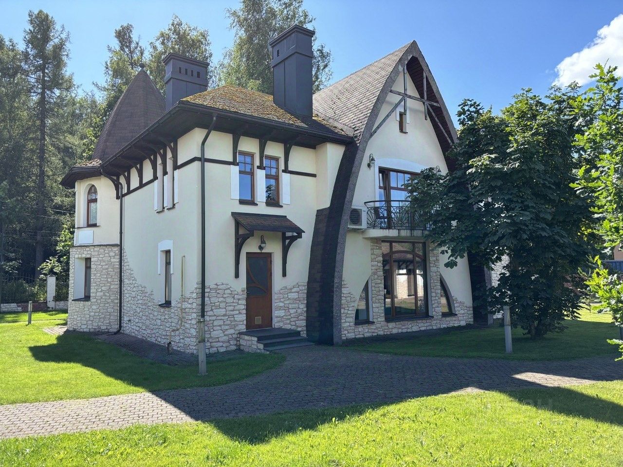 Состоит из основного дома (кирпичный, площадью 257,8 кв.м.), гостевого дома (финский клееный брус, площадью 180 кв.м.) и гаража (кирпичный, отапливаемый, на 3 машиноместа и хозяйственный блок, площадью 80 кв.м.). Среднемесячный платёж за коммунальные услуги - 14 000 рублей. Годовой налог - 13 000 рублей.