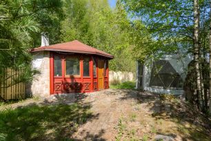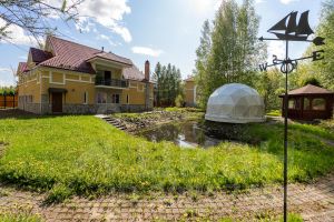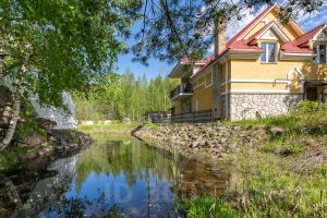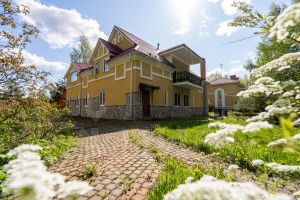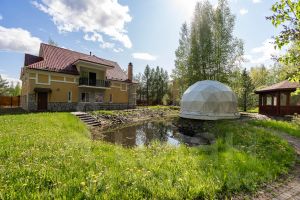 Дом построен из экологически чистых материалов, благодаря чему в доме всегда ощущается тепло и прохлада дерева. На первом этаже располагается два гаража, котельное помещение, комната отдыха, баня и санузел. На втором этаже расположились четыре комнаты кухня, санузел. Ну и безусловной изюминкой дома является терраса на втором этаже с видом на лес и пруд с фонтаном из натурального камня, который включается в теплое время года. На земельном участке проведены ландшафтные работы, участок ровный. Дорожки выложены из натурального камня, произведены дренажные работы. В виде бонуса к дому можно рассматривать также большой хозяйственный блок, в котором расположился гараж и блок для выращивания кур, кроликов и прочей домашней живности. Электричество 15 кВт, отопление посредством газового котла от магистрального газопровода, индивидуальный септик.