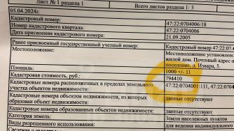 Кадастровый номер участка 47:22:0704006:*** указал продавец